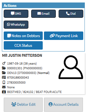 - Click on the Account Details button to access the Debtor/Patient account information.