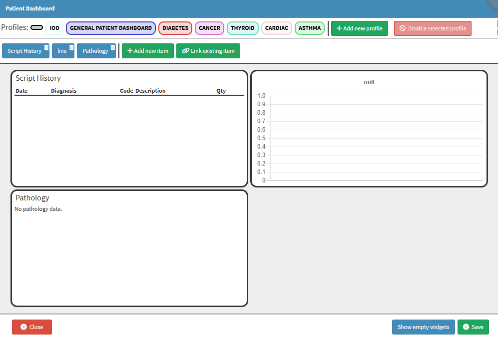 Customising the Widgets or Items on the Dashboard ensures that the most relevant information is displayed according to the Practice’s workflow, supporting faster decision-making and improving the overall efficiency of Patient management.