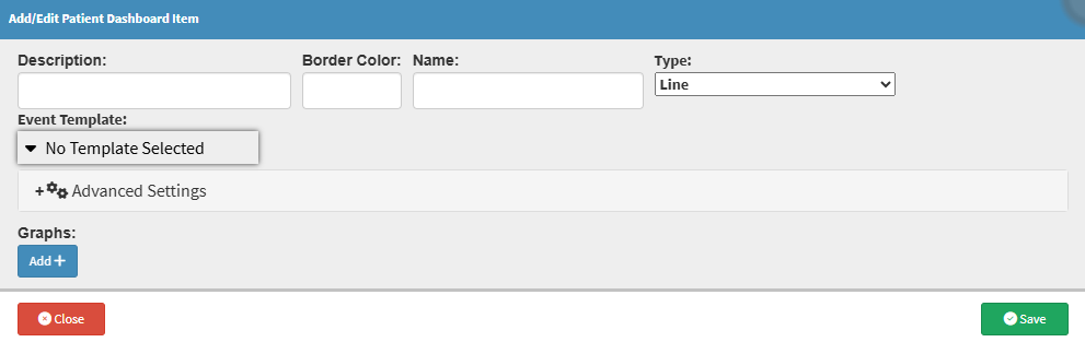 - Click on the Name field to add a name for the Patient Dashboard Item.