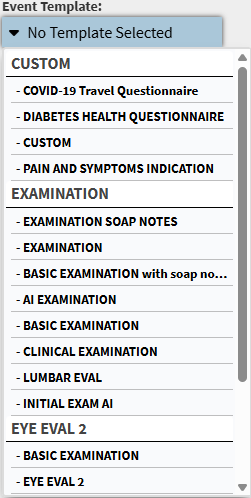 - Click on the Event Template drop-down menu to select an appropriate option for the Dashboard Item.