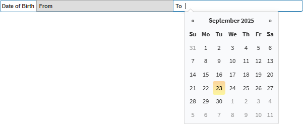 - Click on the Date of Birth field to filter on the To date from the date picker that becomes available.