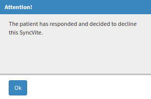 - An Attention pop-up will appear to advise that the patient has responded and decided to decline the SyncVite.