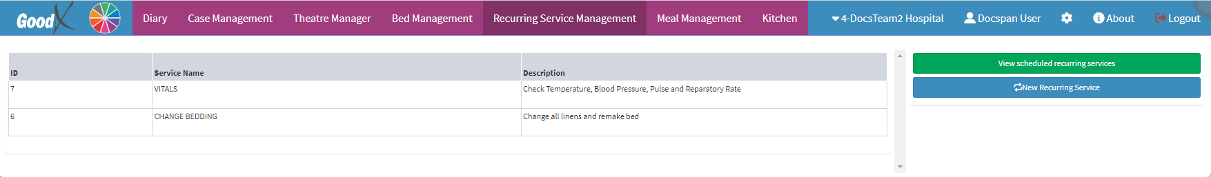 Creating a New Recurring Service allows you to create recurring services that serve as tasks that staff need to complete for/on a Patient. You have the ability to determine which types of services should be repeated by the staff, depending on the needs of your Facility.