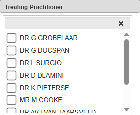 • Click on the Treating Practitioner drop-down menu to select the Treating Practitioner you wish to filter on.