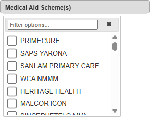 • Click on the Medical Aid Scheme(s) drop-down menu to select the Medical Aid Scheme(s) you wish to filter on.