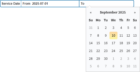 • Click on the Service Date From field to filter on the start date from the date picker that becomes available.