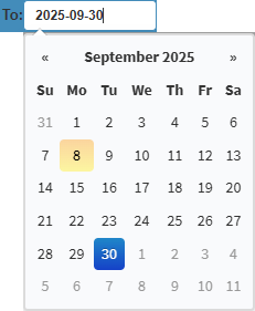 - Click on the From field to select the starting date from the date picker.