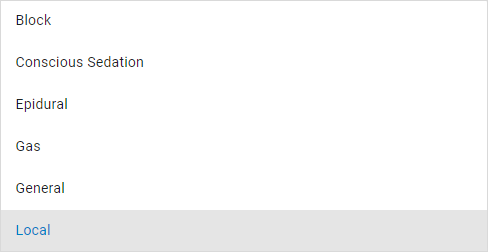 - Click/Tap on the Anaesthetic Type drop-down menu.