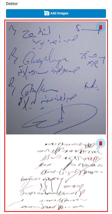 - Click on the Add Images button in the Debtor section to add any relevant documentation to the Operation tab.
