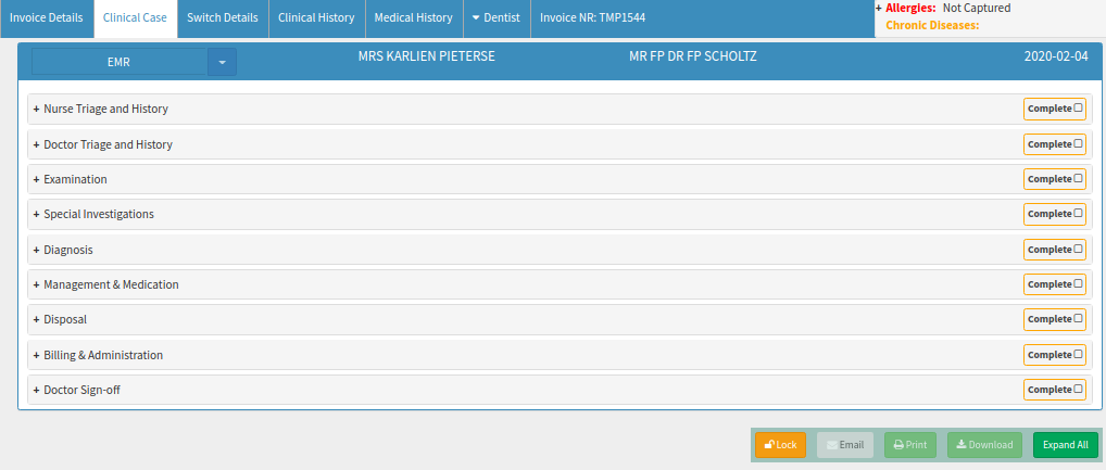 - Doctor Sign-Off: The Doctor will add his signature to the EMR Form after every section was completed.