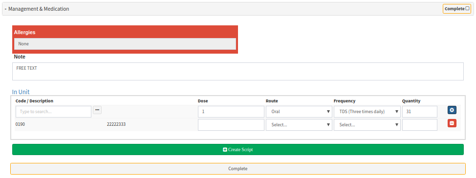- Management and Medication: the purpose of this section is to help the Doctors and regulators to focus on mitigating the risks for medication management in the emergency room. Reducing opportunities for medication error and increasing the opportunities for a safe medication management environment represents a prime opportunity to improve the healthcare delivery system. You will complete and issue a script from here for the Patient.