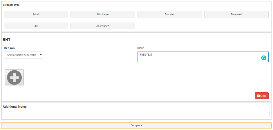 - RHT: Refusal of Health. If the patient was not examined or help and left the Doctor can complete this section and give a reason for the RHT.