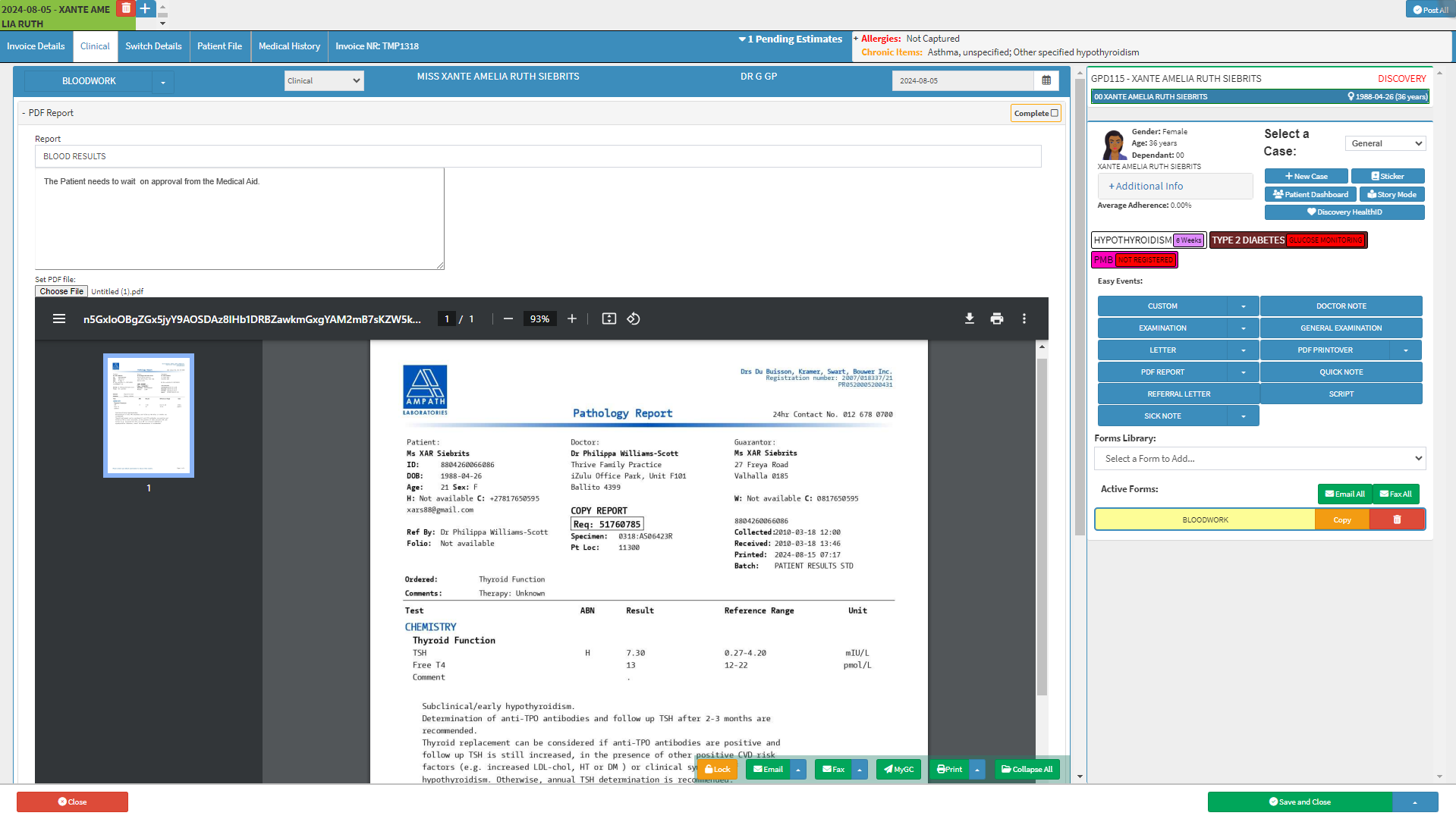 The blank PDF can now be used to upload the necessary documentation, such as results from bloodwork done.