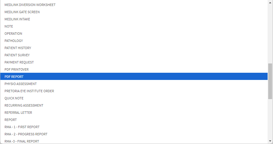 Click on the PDF Printover drop-down menu to Select the correct PDF Report Template you would like to use, from the list of Templates that has become available.